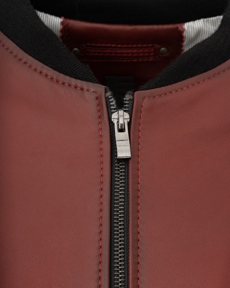 Pánská kožená bomberka Dylan je vyrobena z přírodní jehněčí kůže, která je mimořádně lehká, odolná proti poškození a trvanlivá. Zapíná se na odolný, pevný, kovový zip. Použité žebrované lemy ve spodní části, u krku a na manžetách rukávů dodávají modelu špetku ležérnosti a sportovního charakteru, a zároveň chrání tělo před pronikajícím chladem pod materiál.