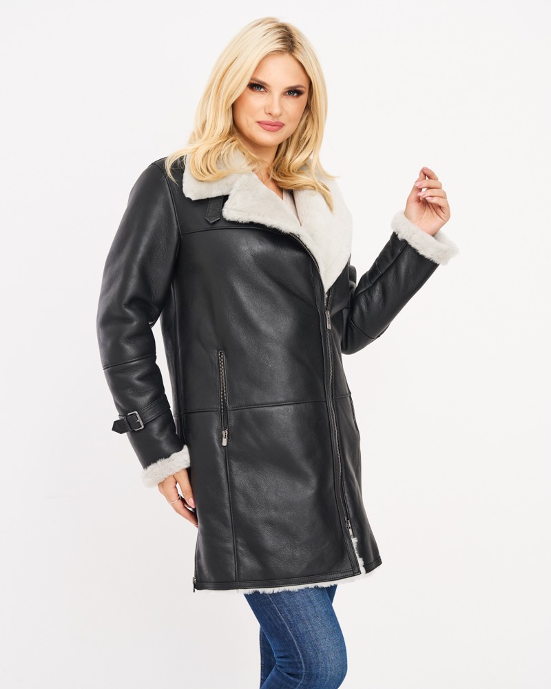 Dámský kožich Lidia má jednoduchý, pohyb neomezující střih, a délka pod kolena zaručuje teplo a moderní vzhled. Opticky zeštíhluje postavu a elegantně vypadá na každé figuře. Tento model je bohatý na moderní akcenty, jako je zapínání na oboustranný, asymetricky všitý zip nebo ozdobné šňůrky po obou stranách.