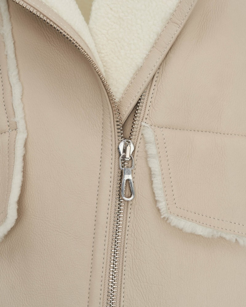 Dámský kožich Liza se zapíná na vysoce odolný, hladce fungující zip, který zabrání pronikání chladu dovnitř. O tepelný komfort se stará materiál, z něhož je model vyroben. Jedná se o přírodní ovčí kožešinu, která je na dotek překvapivě měkká, poskytuje teplo, zajímavý styl a dlouhodobou odolnost. Manžety a přední část kožichu jsou zdobeny vsadkami z rubové části kůže, což dodává projektu jedinečný charakter. Jeho praktičnost byla zvýšena díky funkčním bočním kapsám se zipem po stranách.