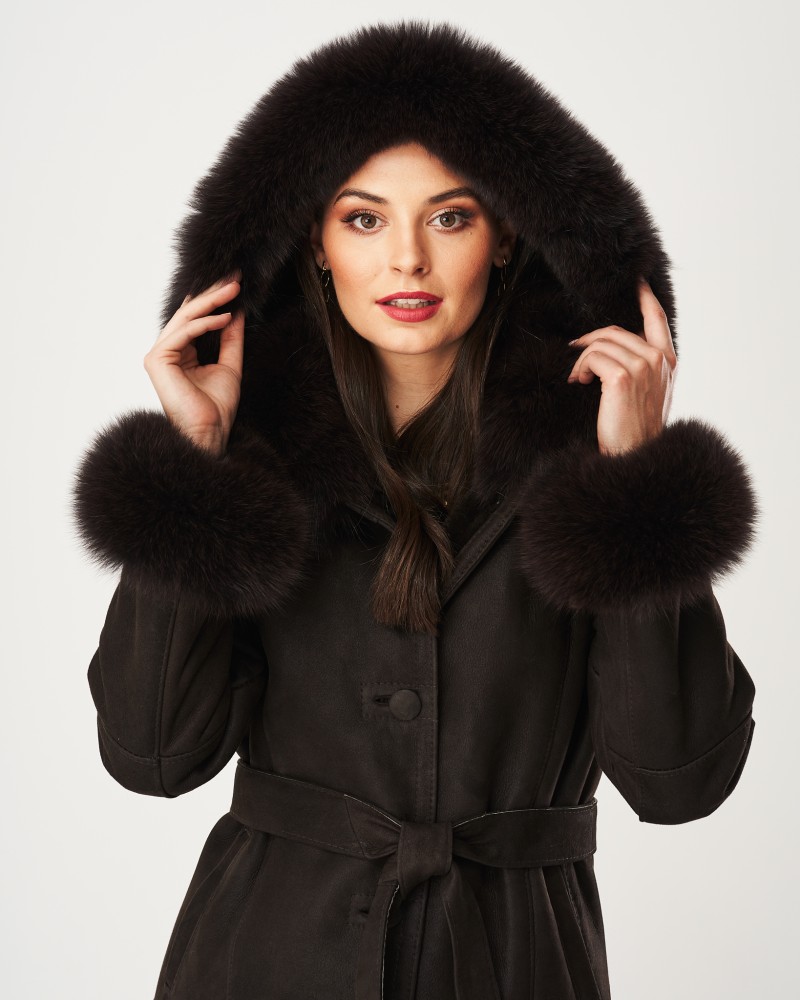 Dámský kožich Magda díky své nadčasové barvě ideálně ladí s mnoha doplňky. Kombinací s vysokými botami vytvoříte jedinečnou stylizaci, ve které přitáhnete pozornost okolí. Použití vysoce kvalitní, přírodní ovčí kůže není náhodné – kožich Magda je určen pro chladné roční období a ovčí kůže skvěle chrání nejen před mrazem, ale i větrem a sněhem. U kapuce s tkanicemi, na rukávech a límci se nachází ohromně měkký, příjemný na dotek lem z přírodního lišáka, který dodává projektu exkluzivní charakter a eleganci.