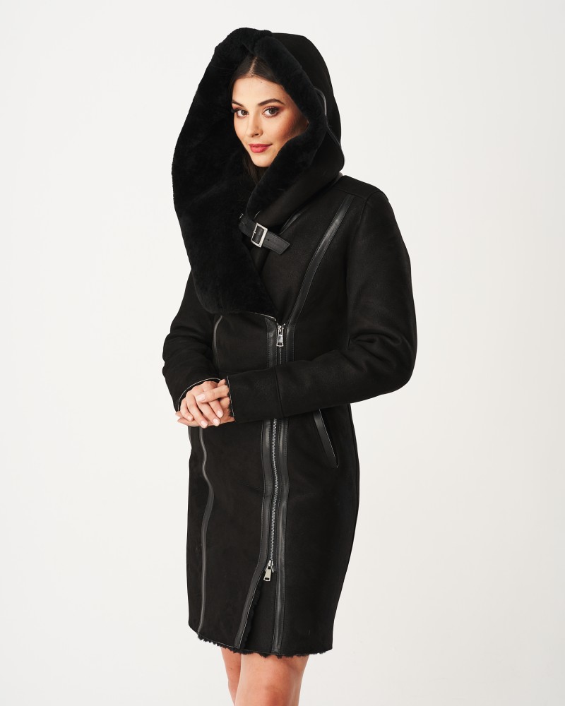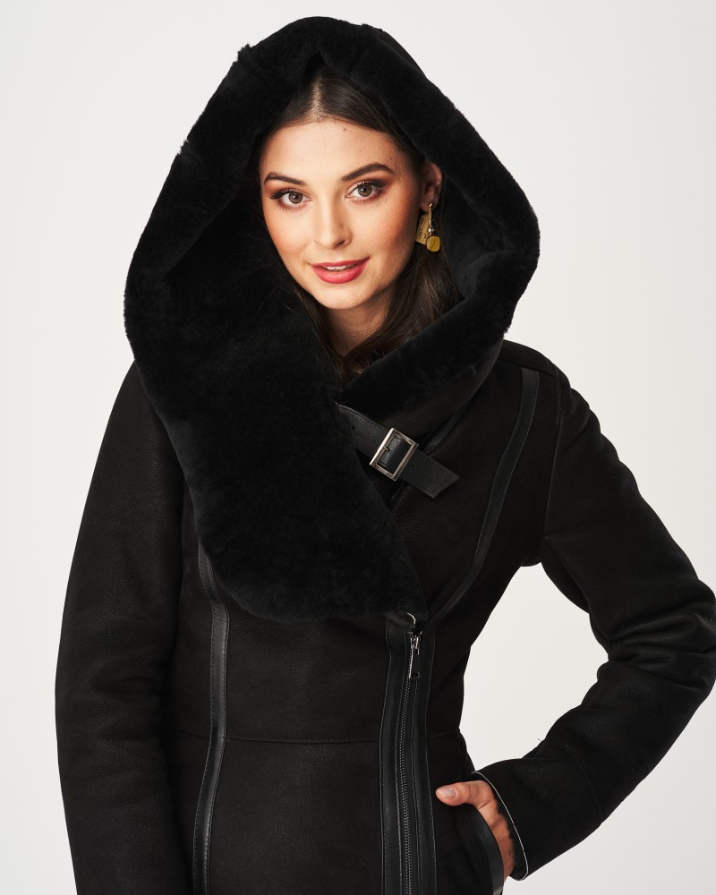 Dámský kožich Marcella skvěle sedí na postavě a jeho mírně přiléhavý střih zdůrazňuje to, co je na ženské figuře nejkrásnější. Vertikální prošívání opticky zeštíhluje, dodávající sebevědomí a atraktivitu v každé situaci. Zvláštní pozornost si zaslouží nádherný, teplý, klopený límec, který vychází přímo z prostorné, dokonale chránící před chladem, větrem, deštěm a sněhem kapuce zapínané na praktický pásek s přezkou. Celý projekt je doplněn hladkými vsadkami z lícové kůže, což oživuje jeho design a odlišuje model z davu. Praktické boční kapsy se ideálně hodí jako úložný prostor na nezbytné drobnosti nebo místo pro schování rukou v opravdu chladných dnech.