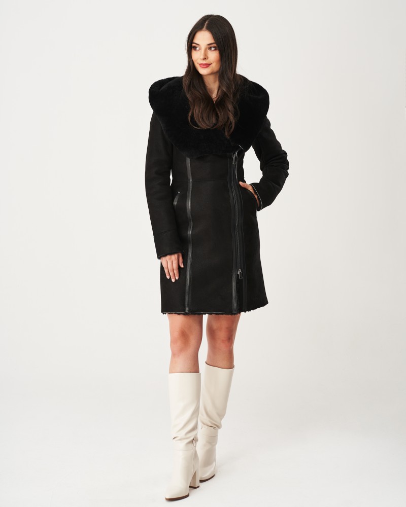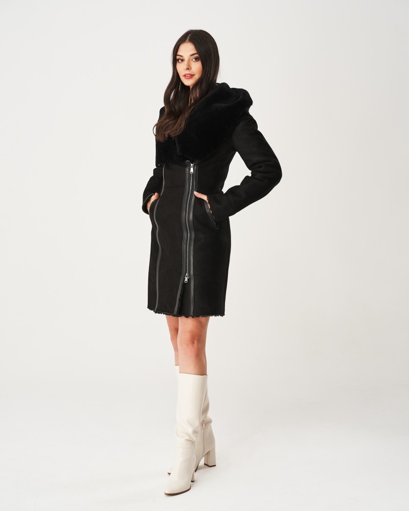 Dámský kožich Marcella sahá do poloviny stehna, proto skvěle zvýrazní nohy a obuv, která je k outfitu zvolena. Stojí za to vsadit na vysoké kotníkové boty, protože takové kombinace působí smyslně a velmi ženský. Šikmo vsazený zip z nerezové oceli pracuje plynule a lehce, zaručujíc váš tepelný komfort. Model je ušit z nejkvalitnější 100% přírodní ovčí kůže, která se vyznačuje mimořádnou jemností, pružností a zároveň vysokou odolností, proto oděvní prvky z ní mohou sloužit po mnoho let.