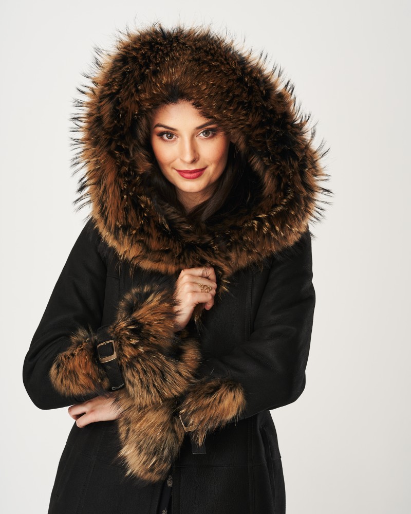 Dámský kožich Merin kombinuje praktičnost a odolnost přírodní ovčí kůže, která skvěle chrání nejen před mrazem, ale také větrem a sněhem s jedinečným vzhledem přírodního norekového kožíšku. Vložky umístěné u rukávů a funkčního, prostorného kapucně dodávají projektu neopakovatelný charakter, lákají k přitulení se do měkkého kožíšku v nejchladnějších dnech roku. Rukávy byly navíc doplněny přezkami, které ideálně doplňují celý projekt.
