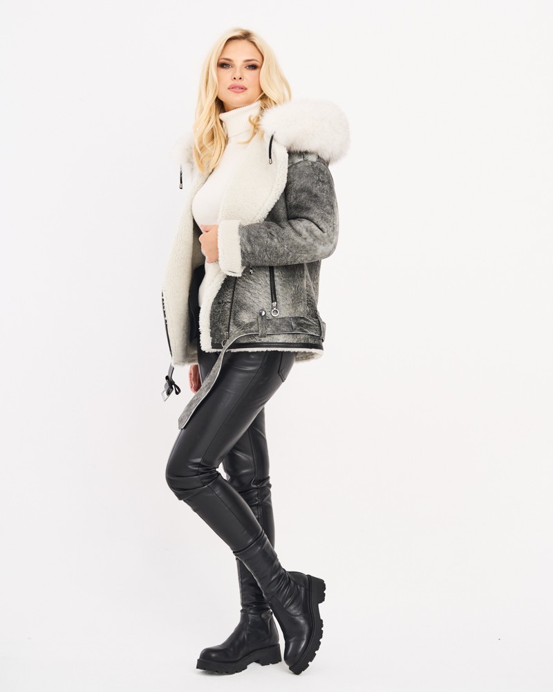 Přírodní dámský kožich Misaki má spektakulární design, který tvoří především okouzlující měkké, kožešinové vsadky z přírodní lišky umístěné na manžetách rukávů, límci a kapuci. Tyto prvky se barevně odlišují od celého projektu, přitahují pozornost a odlišují kožich v davu. Optimální délka sahající k oblasti boků způsobuje, že model dokonale sedí na postavě, skvěle zdůrazňuje její přednosti, a zároveň poskytuje maximální komfort nošení, pohodlí a volnost pohybu.