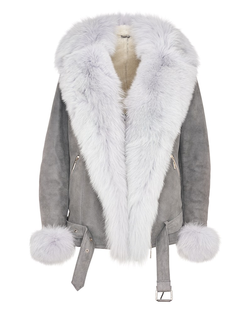 Přírodní dámský kožich Naomi šedý byl udržen v zajímavé, světlé barevnosti, díky které při procházkách zimní scenérií splyneš s krajinou a staneš se její atraktivní součástí. Použití při výrobě vysoce kvalitní, přírodní ovčí kůže je zárukou jedinečného tepelného komfortu, ochrany před mrazem a srážkami, a také dlouholeté trvanlivosti. Vykládaný límec a manžety rukávů byly ozdobeny sametově měkkým, přírodním liščím kožichem, do kterého se s potěšením zachoulíš během zimní procházky.