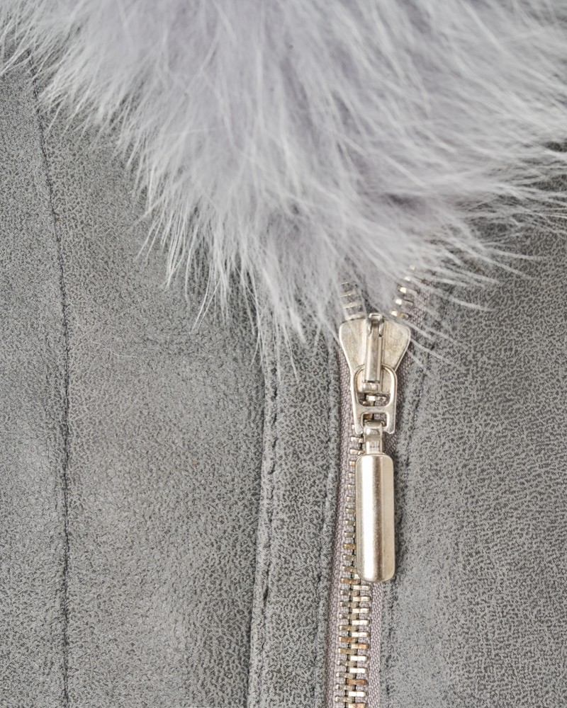 Přírodní dámský kožich Naomi šedý se zapíná na odolný, plynule fungující zip z nerezové oceli. Kapsy po stranách mají stejné zapínání, proto drobnůstky uložené uvnitř nebudou ztraceny. Ve spodní části modelu se nachází pásek s přezkou, který umožňuje dokonalé přizpůsobení kožichu postavě. Jednoduchý střih a délka končící na linii boků spolu s pečlivě provedeným prošíváním způsobují, že tvá postava bude vypadat bezchybně a atraktivně.