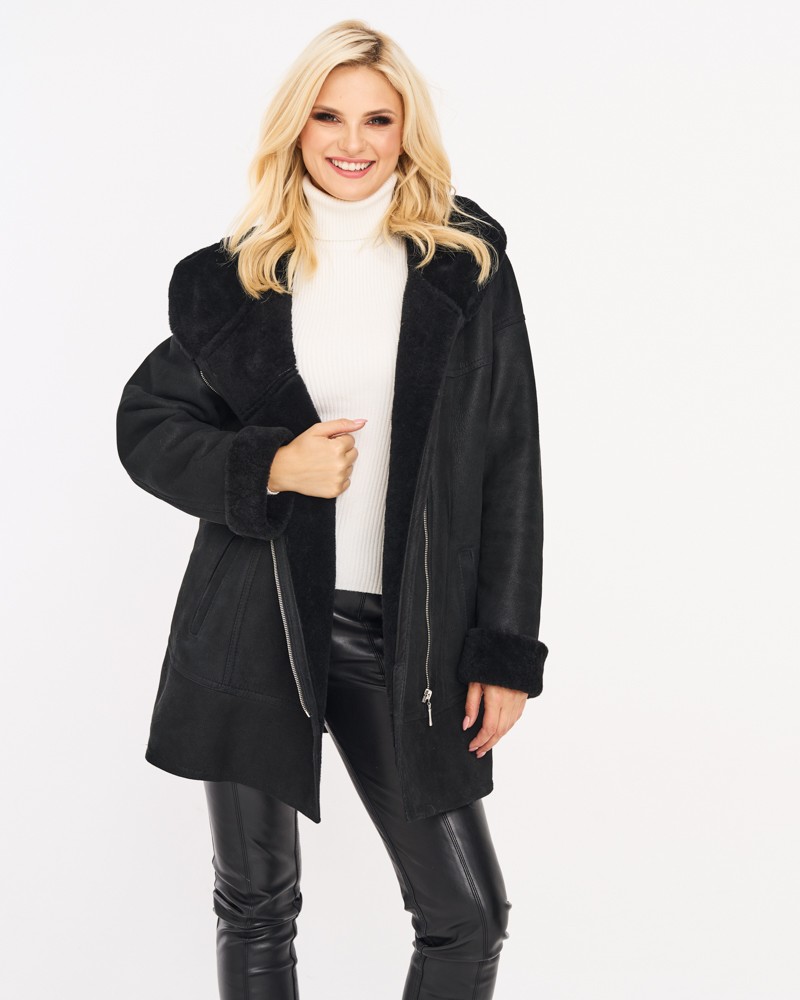 Přírodní dámský kožich Otylia má volnější střih, který se skvěle přizpůsobí každému typu postavy, poskytující maximální komfort nošení, pohodlí a volnost pohybu bez ohledu na okolnosti. Vnější vrstvu tvoří vysoce kvalitní, hladká, matná ovčí kůže, zatímco spodní vrstvu příjemné na dotek, hřejivé kožíšek, přítomný také u límce, kapuce a manžet rukávů.