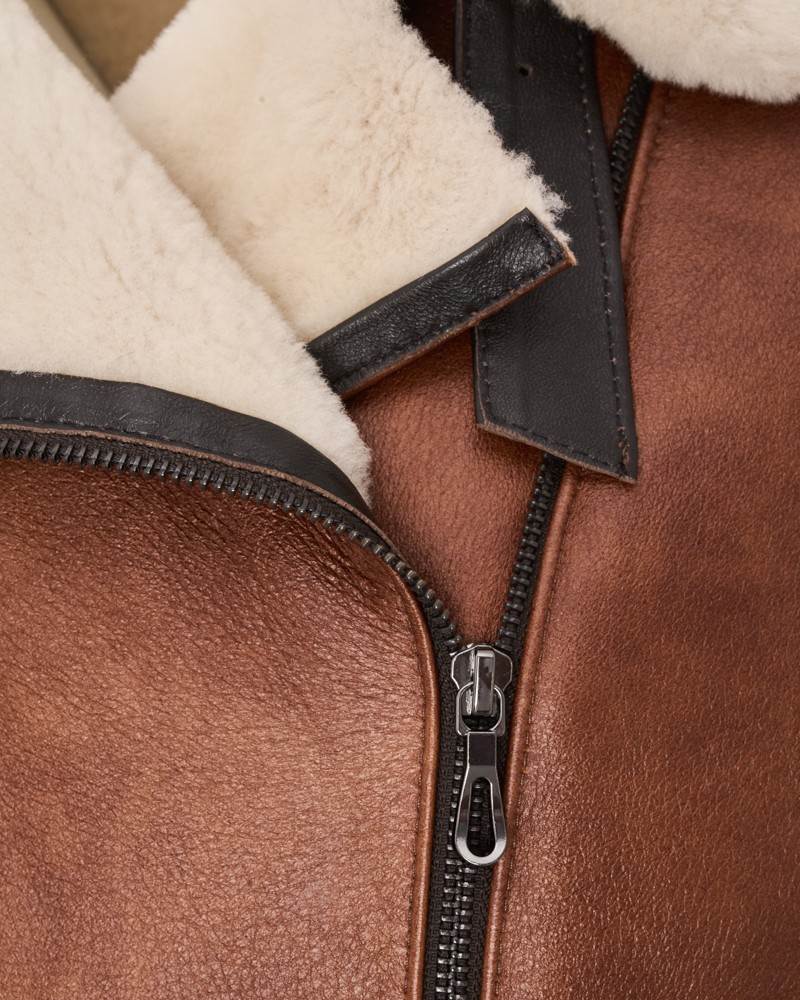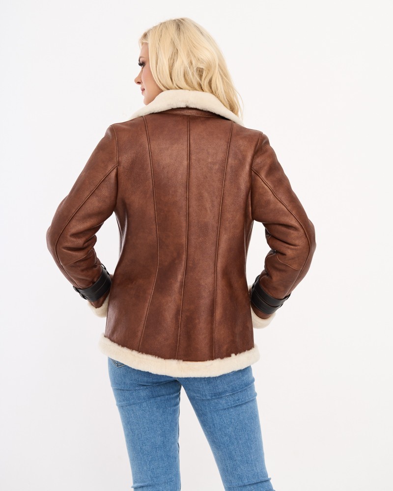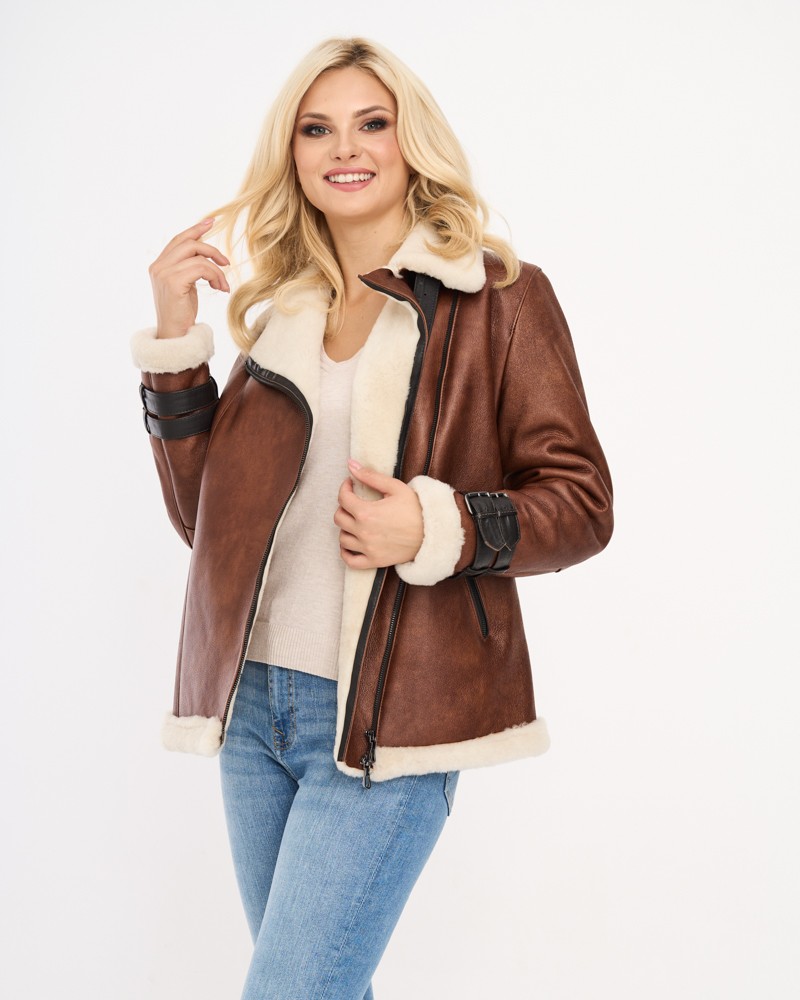 Přírodní dámský kožich Rose má u manžet rukávů elegantní, ozdobné pásky s přezkami, které se jemně barevně odlišují od celého projektu. Model je zapínán na odolný, plynule fungující zip z nerezové oceli všitý lehce našikmo, podobně jako praktické a funkční boční kapsy. Díky ušití ze 100% přírodní ovčí kůže poslouží dlouhá léta, poskytující ochranu před chladem a hřející v nejchladnějších dnech.