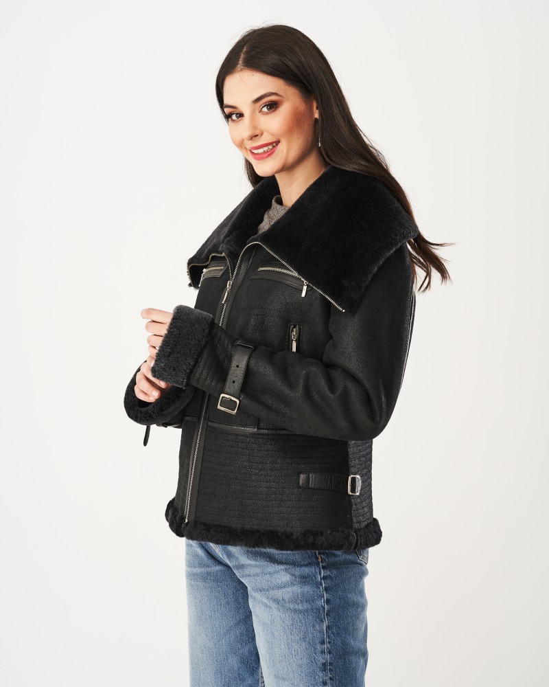 Dámský kožich Victoria je zapínán na pohodlný, nerezový zip. Tento model nabízí množství kapes – všechny na zip stejného typu. Dlouhé rukávy jsou ozdobeny měkkým ovčím kožíškem a moderní vzhled jim dodávají pásky zapínané na nerezové přezky. Kožich si oblíbí dámy, které si cení tepelného komfortu, pohodlí, volnosti a moderního vzhledu.