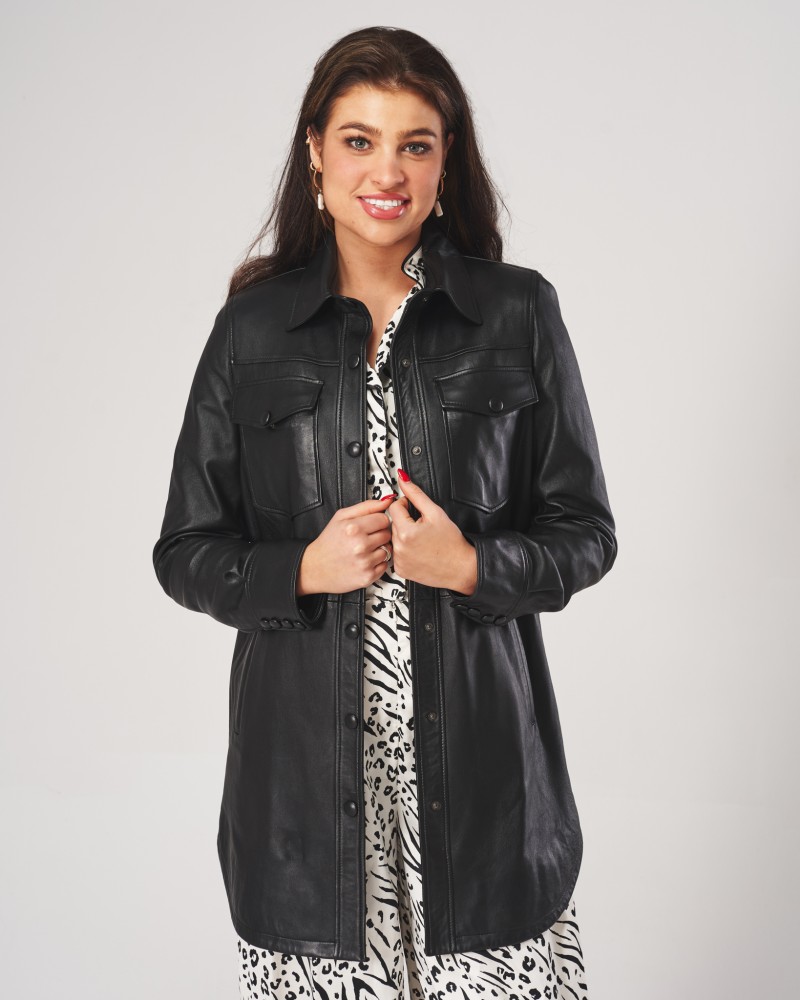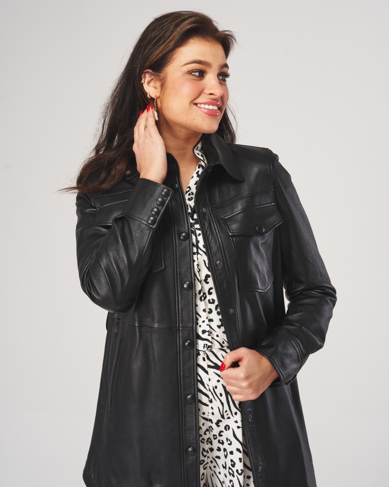 Dámský kožený kabát Najla vizuálně připomíná klasickou košili, proto v něm nechybí prvky typické pro tento typ oděvu. U krku se nachází elegantní a stylový límeček. Na úrovni prsou jsou dvě našité kapsy zapínané, stejně jako samotný model, na stylové druky. Dole po stranách je další pár – tentokrát vsazených – kapes. Tyto jedinečné akcenty vytvářejí výjimečný charakter modelu, díky čemuž není možné kolem něj projít lhostejně.