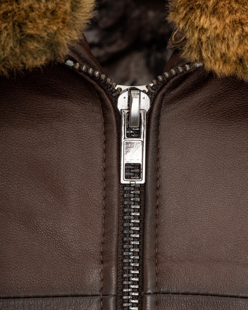 Letecká bunda F35 je ideální model pro fanoušky populárních pilotních bund, které se staly mimořádně žádané v 20. století během druhé světové války. Model, navržený a vyrobený z 100 % v Polsku, jsme střižili do jednoduchého střihu délky do pasu, který dokonale zdůrazňuje přednosti mužské postavy. Je zapínán na praktický a odolný zip z nerezové oceli. Kožíšek na klopovém límci lze snadno odepnout, když je příznivější počasí. Tento a mnoho dalších prvků bundy F35 zajišťuje, že je mimořádně funkční a univerzální.