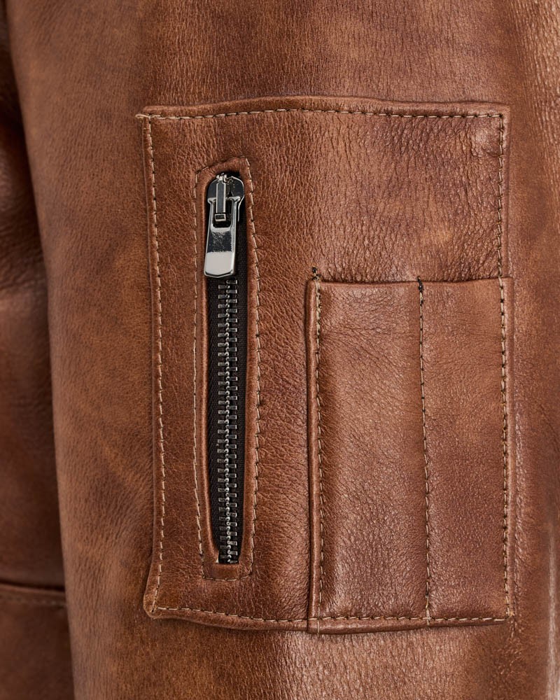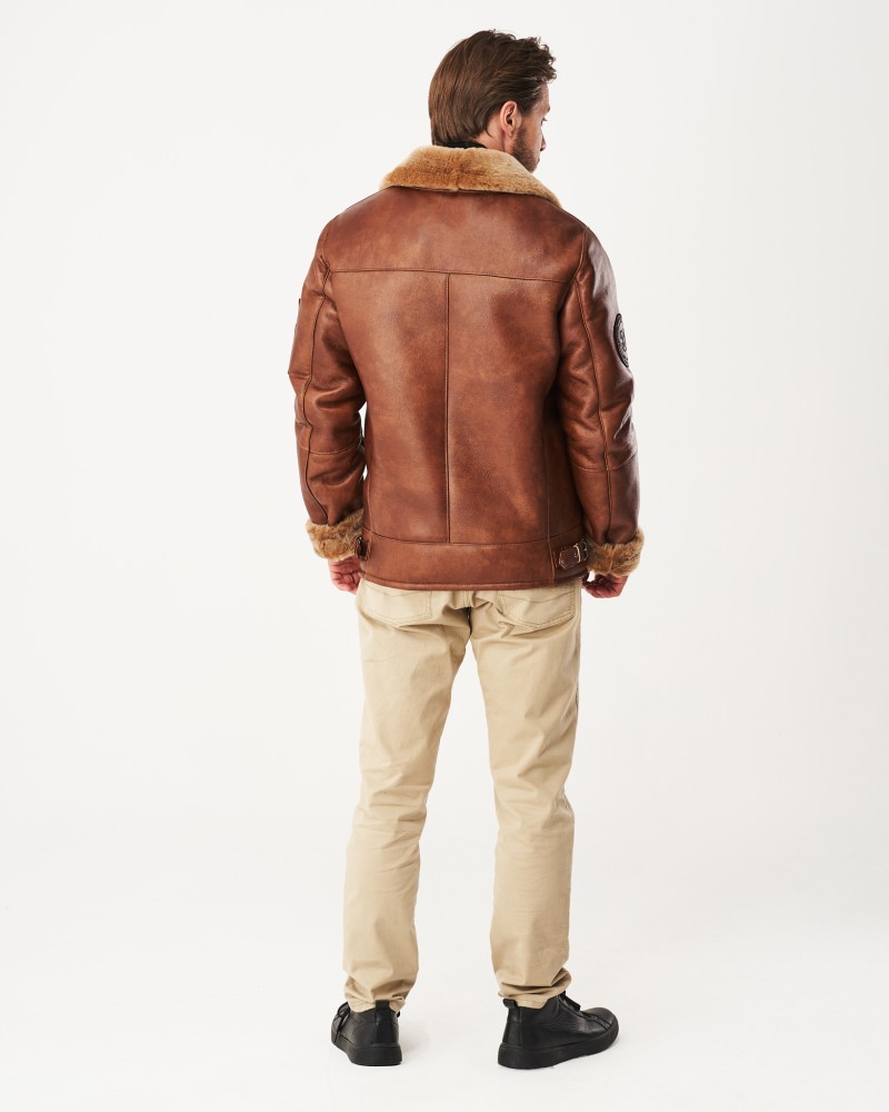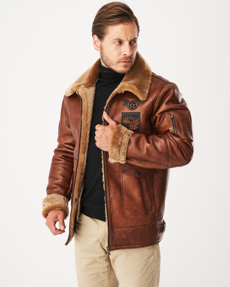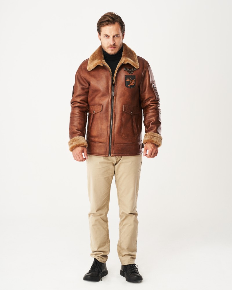 Pánský kožich pilotka Kevin je střižen v klasickém střihu, v délce do boků, čímž zvýrazňuje mužské přednosti postavy. Navíc výrobek zajišťuje volnost pohybu, nádech nonšalance a mnoho lehkosti. Celý zapínaný na odolný nerezový zip, vyznačuje se výjimečnou funkčností. Zadní část kožichu zdobí geometrické prošívání, a kožený pás všitý dole je opatřen přezkou pro dokonalé přizpůsobení tělu. Velké dvojité kapsy s klopou zapínanou na druky se vyznačují praktickostí, umožňující ohřát zmrzlé ruce. Malá kapsička na rukávu podtrhuje sportovní charakter výrobku. Jak se sluší na americkou pilotku, model je vybaven také náramky zdobícími přední část a rukáv.