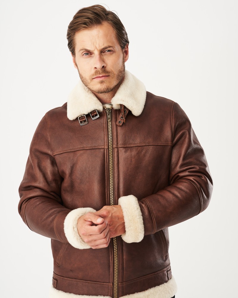 Pánský kožich Vincent má střih krátké bundy sahající k bokům, navržené v lehce padnoucím provedení, které zdůrazňuje přednosti mužské postavy. Přední a zadní část i dlouhé rovné rukávy zdobí dekorativní prošití, které dodává modelu individuální charakter. Zapínání na klasický kovový, nerezový zip zaručuje optimální tepelný komfort. Měkký a nadýchaný světlý kožíškový límec poskytuje útulné teplo a je příjemný na dotek. Připevněny jsou k němu dva kožené pásky zapínané na kovové spony, které umožňují pevné zapnutí límce a jeho přeměnu ve vysoký, pohodlný stoják. Světlý kožíšek na manžetách a spodní části kožichu skvěle ladí s nadýchaným límcem a vytváří zajímavý barevný kontrast s hnědou barvou kožichu. Dvě boční kapsy jsou dokončeny tradičním prošitím. Na bocích modelu jsou dva pásky zapínané na kovové spony, které usnadňují individuální regulaci a přizpůsobení postavě.