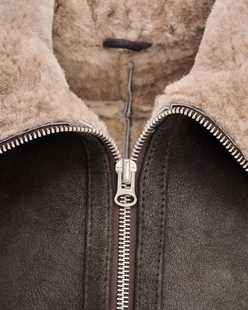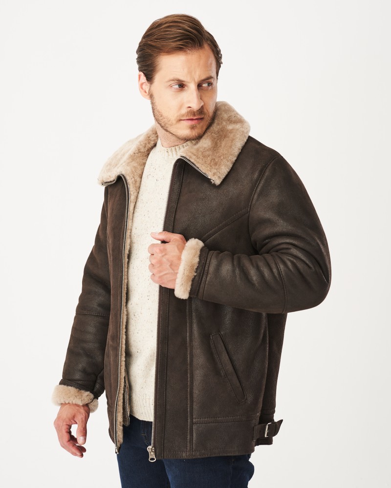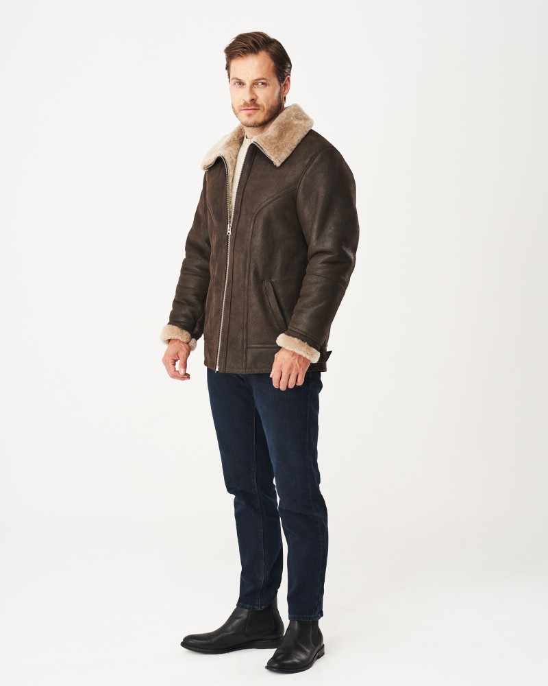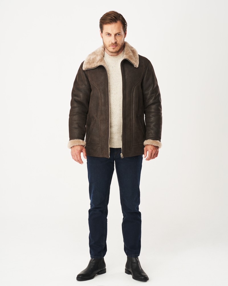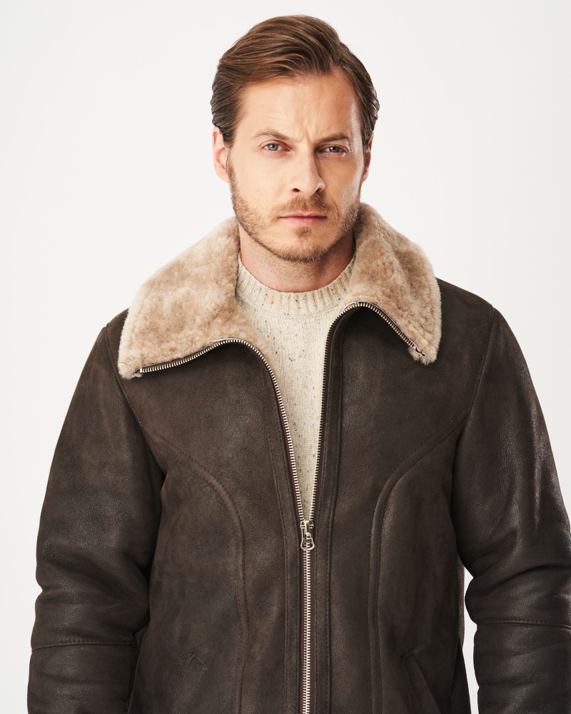 Hnědý pánský kožich Xavier byl navržen v délce do boků, v mírně padnoucím střihu, který zdůrazňuje mužskou postavu a dodává majiteli modelu sebevědomí. Přední strana, zadní strana a dlouhé, rovné rukávy jsou zdobeny diskrétními prošitími. Měkký, chlupatý límec v světle béžové barvě lze snadno proměnit ve vysoký stoják, když venkovní teplota výrazně klesne. Odolný kovový zip z nerezové oceli výborně izoluje tělo od chladu, zimy a srážek. Kožich je vybaven dvěma bočními praktickými kapsami, které ti umožní zahřát zmrzlý ruce. Dva pásky na spodní straně po bocích usnadňují individuální přizpůsobení šířky kožichu postavě.
